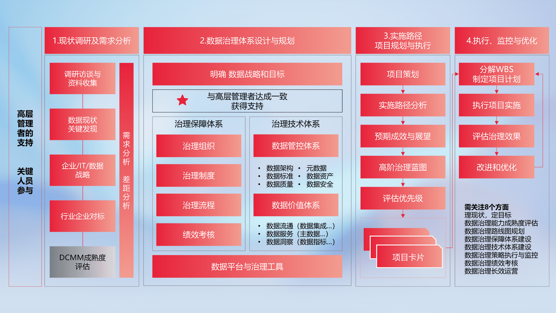 制定并执行统一的数据标准,,规范数据定义和格式,,,,消除冗余和不一致性,,,,实现跨部门和跨系统的数据一致性,,,,为企业提供标准化的数据基础。。。。